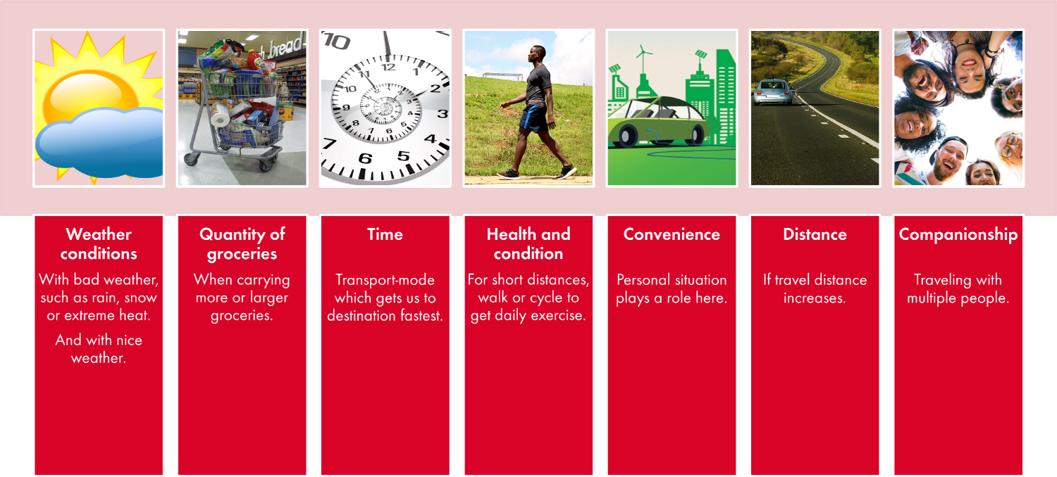 Mobility choices are strongly related to provenance, convenience and travel time.