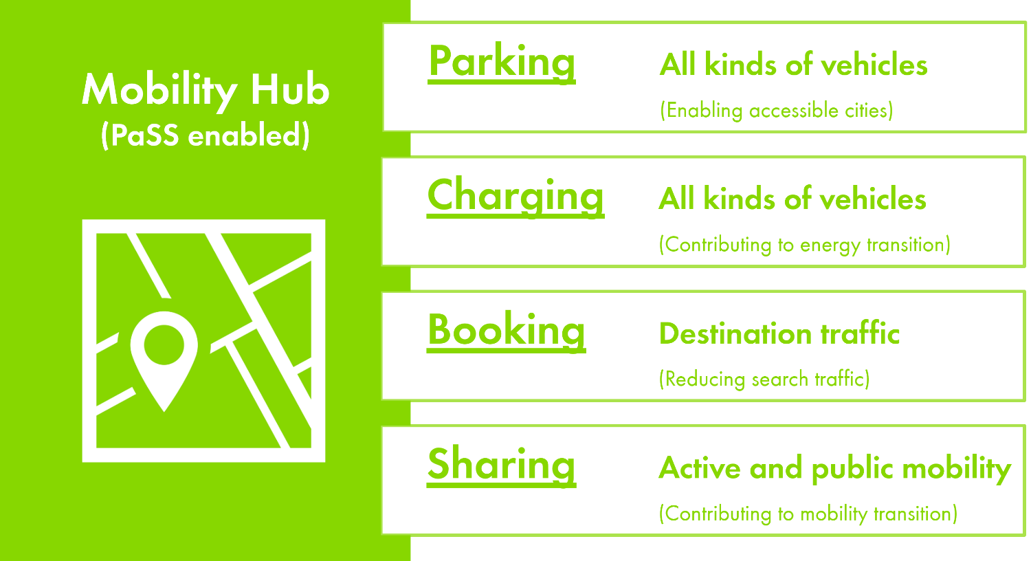 Our mobility hubs offer a range of services in addition to parking and provide urban solutions for accessibility and liveability: