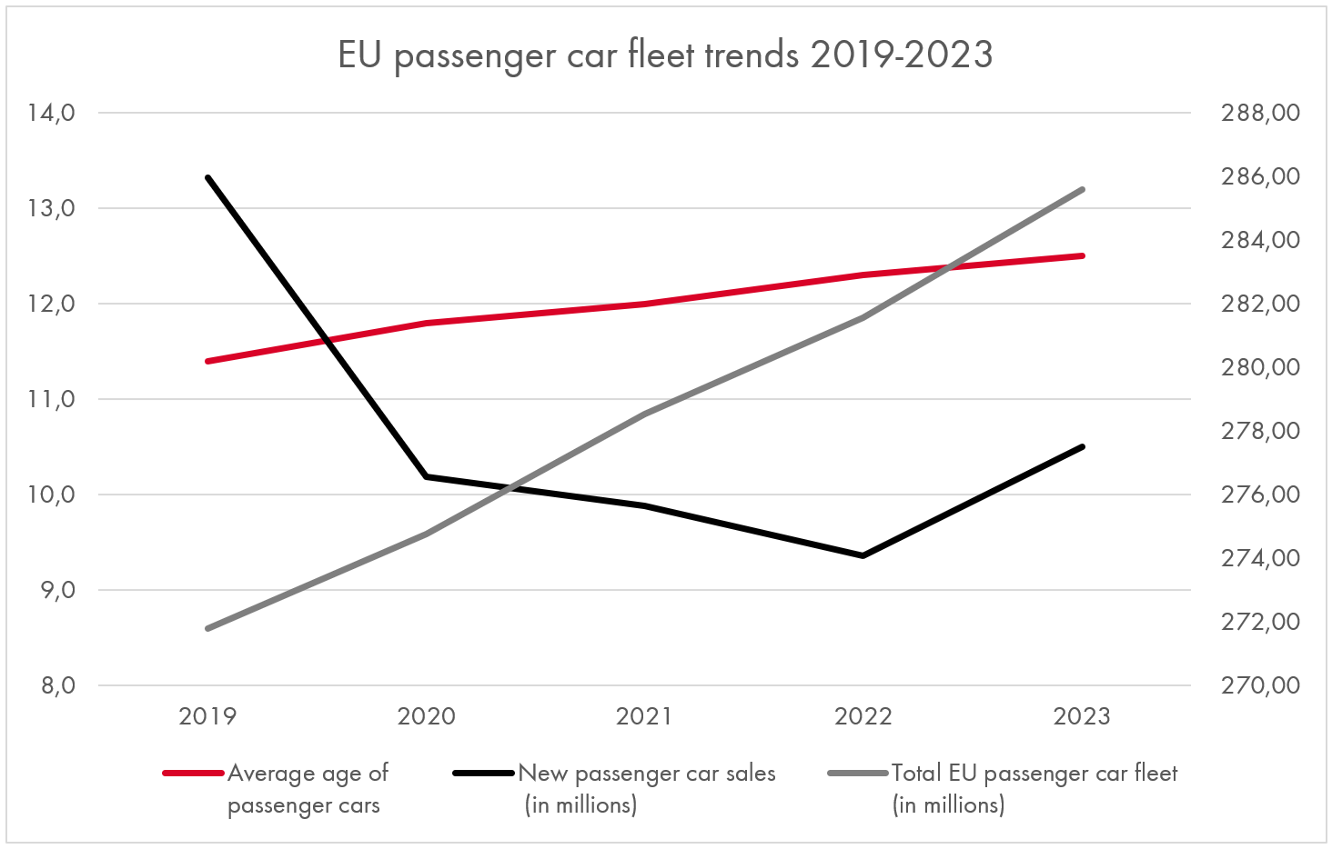 Although new car sales have not returned to their 2019 pre-pandemic peak, the overall passenger car fleet continues to expand. This trend reflects increased vehicle longevity, with cars remaining in use for longer.