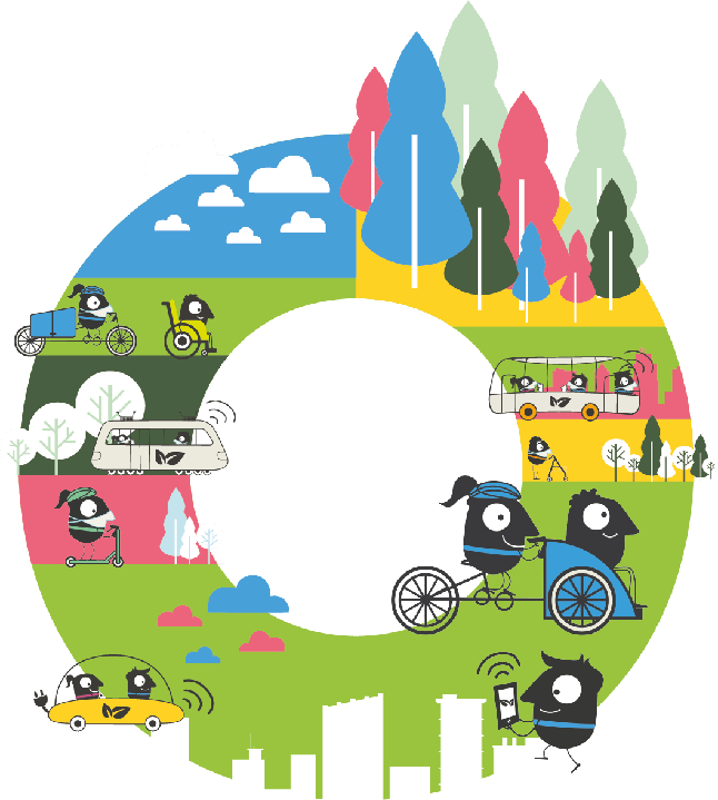 'Zero-emission mobility for all', as simple as a doughnut. The doughnut refers to the theory of the 'doughnut economics' by Kate Raworth.