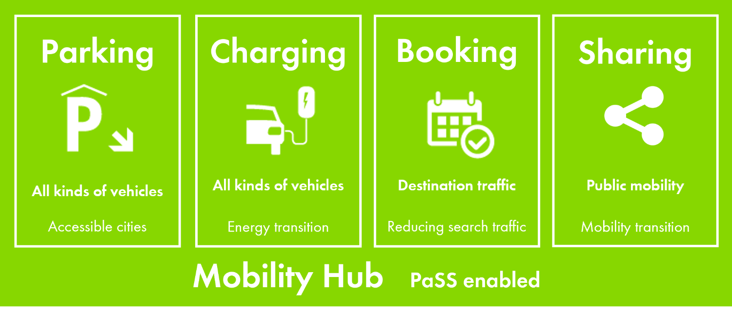 A key aspect of Q-Park's strategy, symbolising its role as a mobility partner, is the Q-Park Mobility Hub. This is a parking facility which integrates a range of features and services, including parking, charging, booking and sharing.