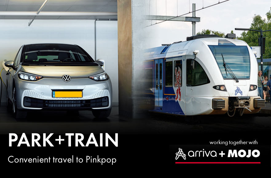 Pinkpop festival organiser Mojo has joined forces with public transport provider Arriva and car park operator Q-Park. They have introduced the Park+Train concept to festivalgoers.