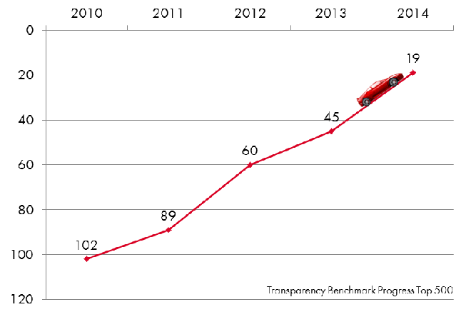 The Dutch Ministry of Economic Affairs has informed Q-Park that its CSR 2013 report Responsible Parking has reached a frontrunners position in the Dutch Transparency Benchmark 2014. We've reached position 19; impressive progress from 102 to 19 in four years.