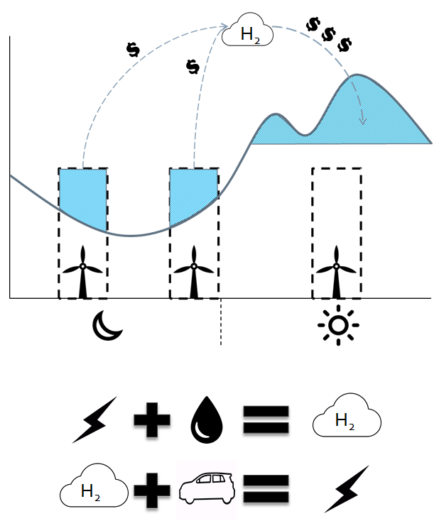 This thesis looks further into the future than using the battery capacity of parked electric cars to flatten peaks in energy demand. If hydrogen technology for fuelling passenger cars develops into viable vehicles, this will offer opportunities to use parking facilities as power plants.