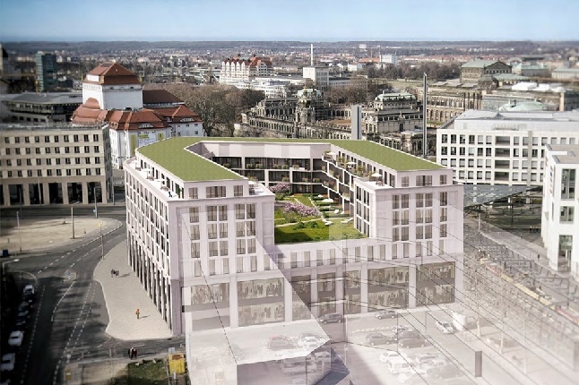The Haus Postplatz car park will provide 160 parking spaces on two levels and will be open around the clock from Monday to Sunday. Haus Postplatz has a total of six floors above ground and a top storey with a total rental area of 18,300 m². Retail outlets and eating places will be located on the ground floor and first floor, together with a fitness suite and offices on the second floor. High-end rental apartments are planned for the 3rd to 5th floors. On the top floor, penthouse apartments with a unique view of the Zwinger will add the finishing touch to the Haus am Postplatz.