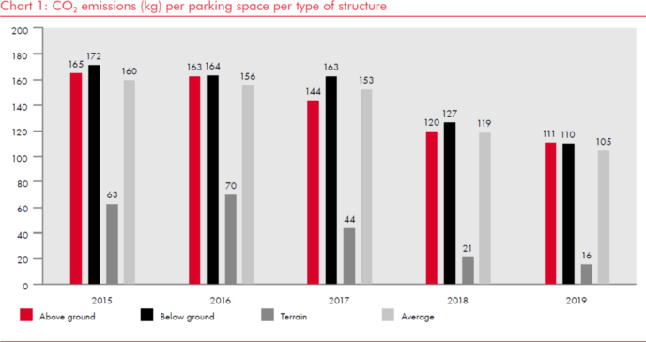 Our carbon footprint per parking space in owned and long-leased parking facilities reduced by 12% compared to 2018.