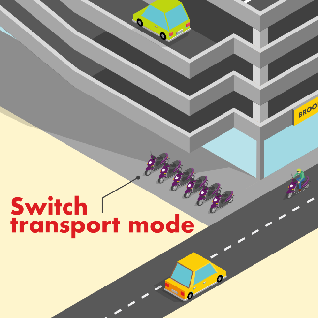 By cleverly combining parking facilities with shared mobility, hubs are created where travellers can easily switch between the car and other forms of transport.