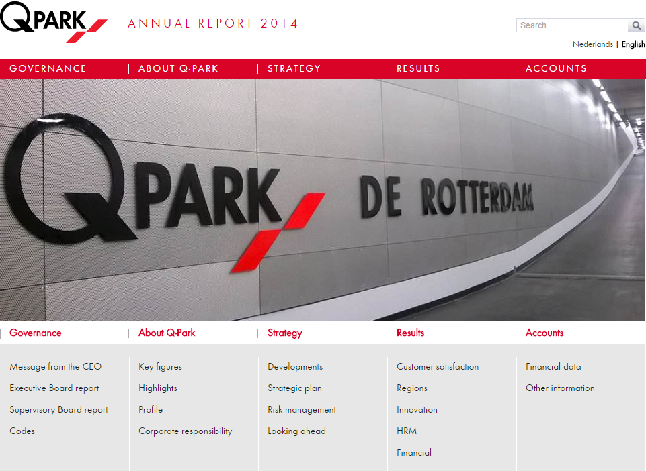 Today Q-Park published its 2014 financial Annual reportĀ and the non-financialĀ CSR report. Both reports provide information in an attractive format and give a comprehensive overview of our business and overall strategy.