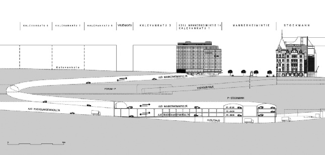 With the old car park located between the busiest streets in Finland, it was clear that the new facility would need to be built below the store. Construction took 39 months, and involved blasting through bedrock. The resulting facility is a perfect example of a column-free car park, with 600 parking spaces spread over three levels.