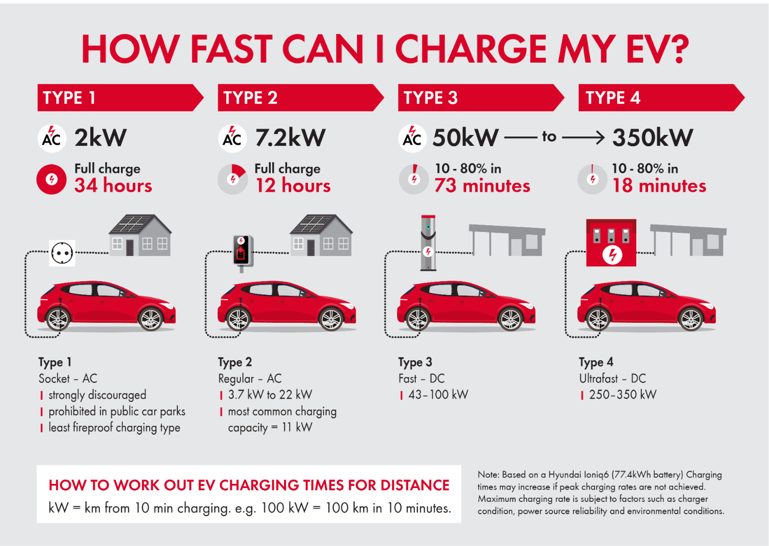Car model, age, battery capacity battery size (kWh) ÷ actual charging power (kW) = charging time.