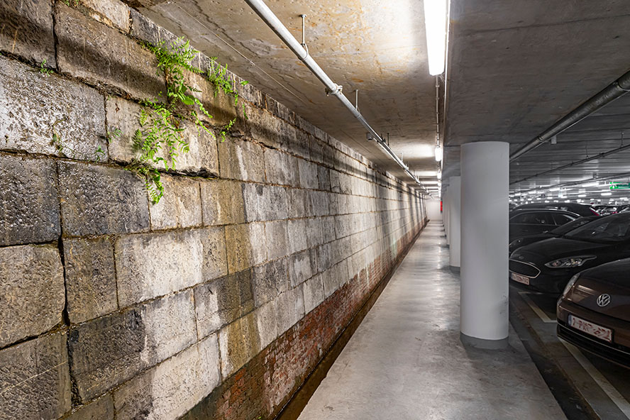 During construction, the historic dock walls were exposed and retained, which links the modern parking facilities to their historical background.
