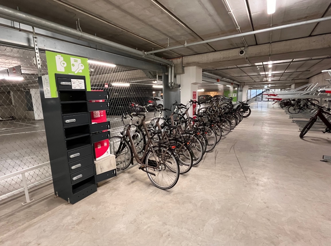 Charging lockers in the bicycle parking area