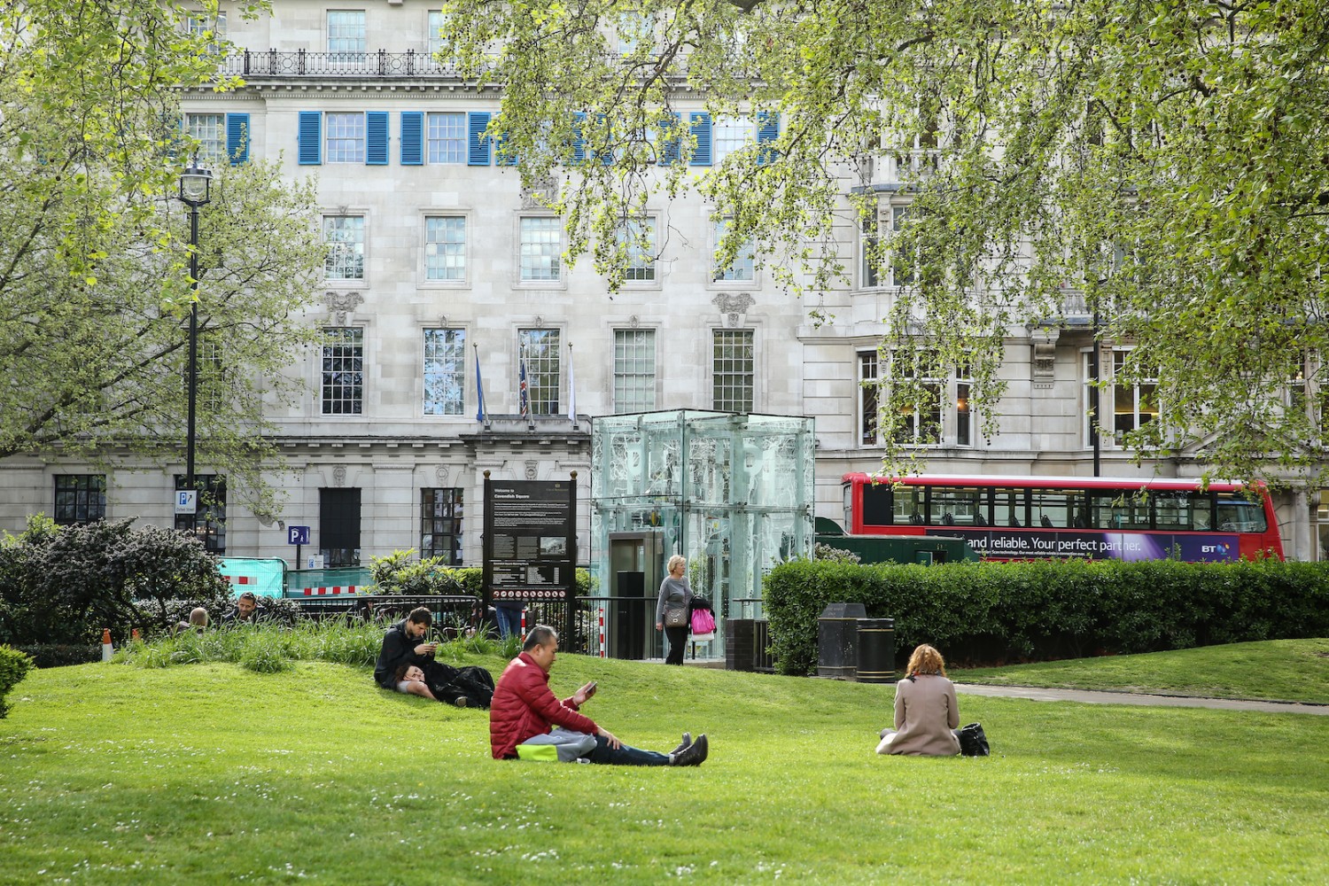 People relaxing in Cavendish Square Gardens above Q-Park Oxford Street
