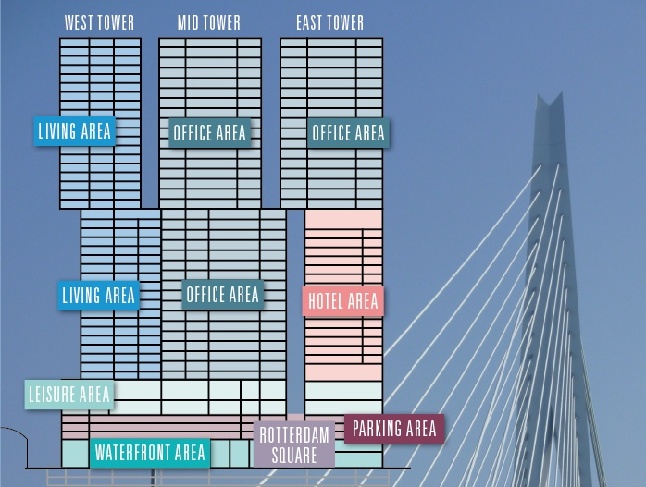 Middle tower: offices. The municipality of Rotterdam occupies 25,000 m2.