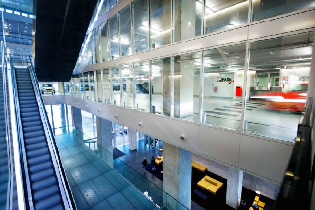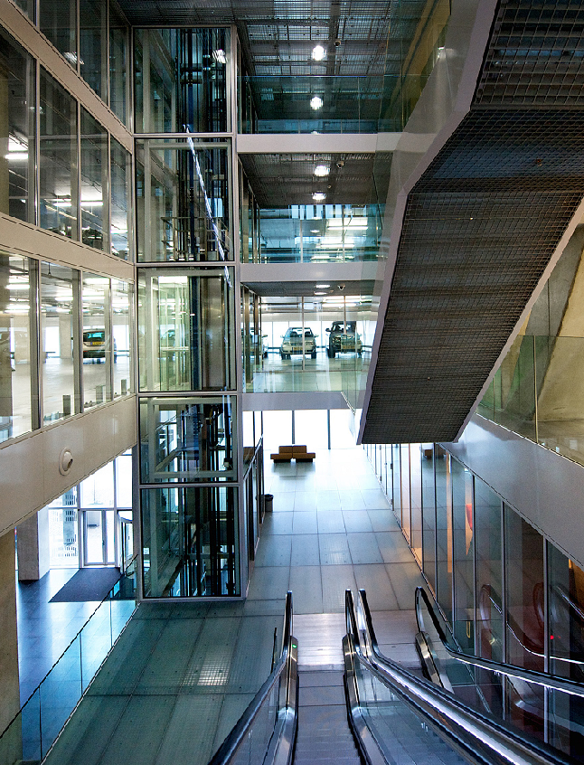 Three parking levels in the building - fully transparent due to the atrium