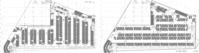 Original layout and rotated layout after upgrade - increased customer convenience at the expense of less than 10 parking spaces