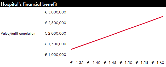 This mathematical model shows two variants of the financial benefits to the hospital with a direct correlation to the desired parking tariff.