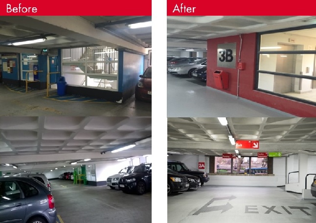 After acquiring the facility, Q-Park immediately set about upgrading the car park. Significant improvements were made to the building itself including changes to the entrance and lane design to provide easy access, increase room for manoeuvre and reduce the risk of collision; and repairs to the concrete to enhance parking safety.