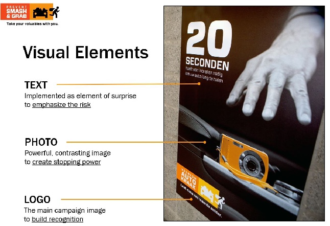 Drawing on the joint experience and resources of the municipality, the local Police Department and Q‑Park, the campaign addresses the problem of theft from cars with a combination of public space management, innovative policing tactics, and a unique communication campaign. The campaign materials are designed to be placed in and around car parks, on-street parking areas and at tourist places.