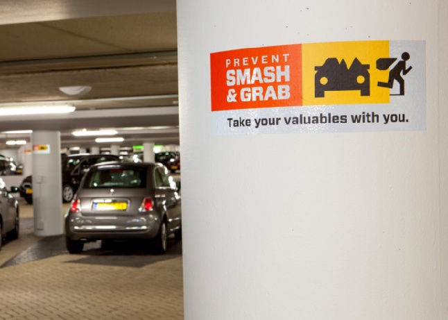 The behavioural psychology experts recommended the logo be placed on walls and pillars at eye height so that people are reminded to take their valuables with them as they get out of their car. Within the crucial three seconds before they think ahead to the reason that they are parked.