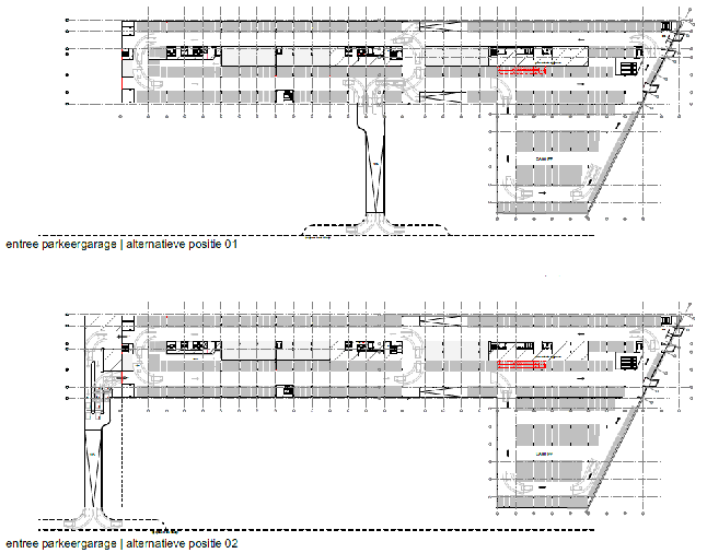 The new plans for the two-level underground car park consider two options for a single access/exit point, focussing on an efficient infrastructure and realising effective parking for a multitude of functions.