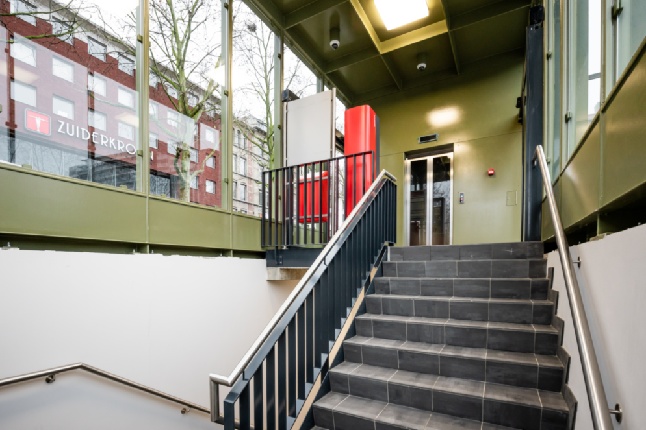 Wide staircase and glass-fronted lift (Photo by Lucid)