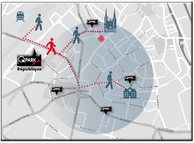 Q-Park République, near the train station and within walking distance of main attractions