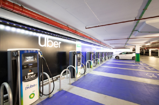 Uber fleet motorists recharge at the bp Pulse charging stations