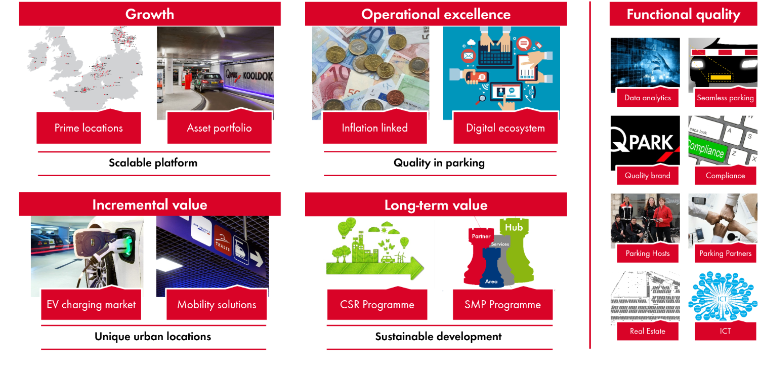 Functional quality – supported by our data analytics, quality brand, compliance, Parking Hosts, mobility partners, real estate and ICT.